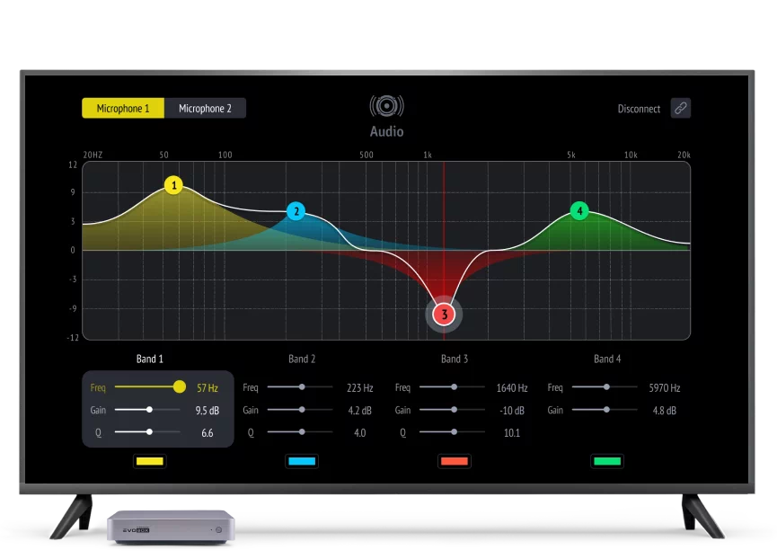 Вы сможете тонко настроить эквалайзер для каждого микрофона, изменять тон, темп мелодии и применять эффекты «Delay» и «Reverb». Добейтесь идеального звучания вашего голоса и сохраняйте настройки.