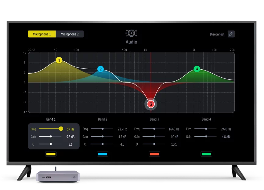 Вы сможете тонко настроить эквалайзер для каждого микрофона, изменять тон, темп мелодии и применять эффекты «Delay» и «Reverb». Добейтесь идеального звучания вашего голоса и сохраняйте настройки.